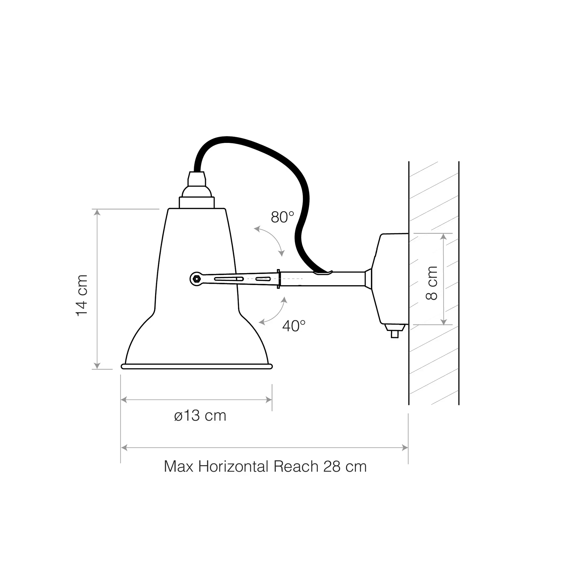 - Compact Dimensions: The mini size makes it perfect for smaller spaces or for creating a focused light source without overwhelming the area. It has a wall plate diameter of 70mm, a shade diameter of 130mm, and an arm length of 130mm.