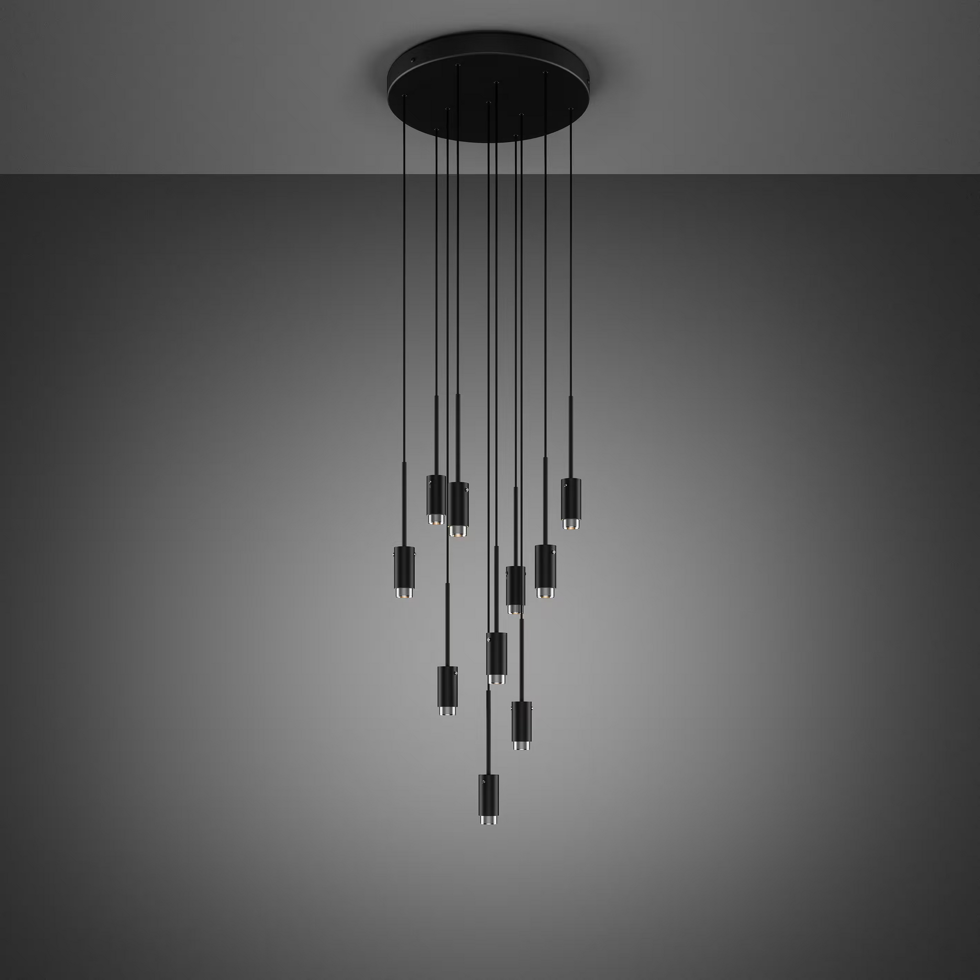 A bespoke CASCADE chandelier with either 10, 19 or 31 light pendants made from solid metal and featuring our linear-knurl pattern.