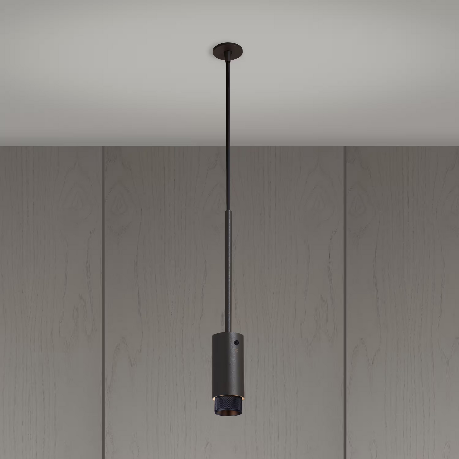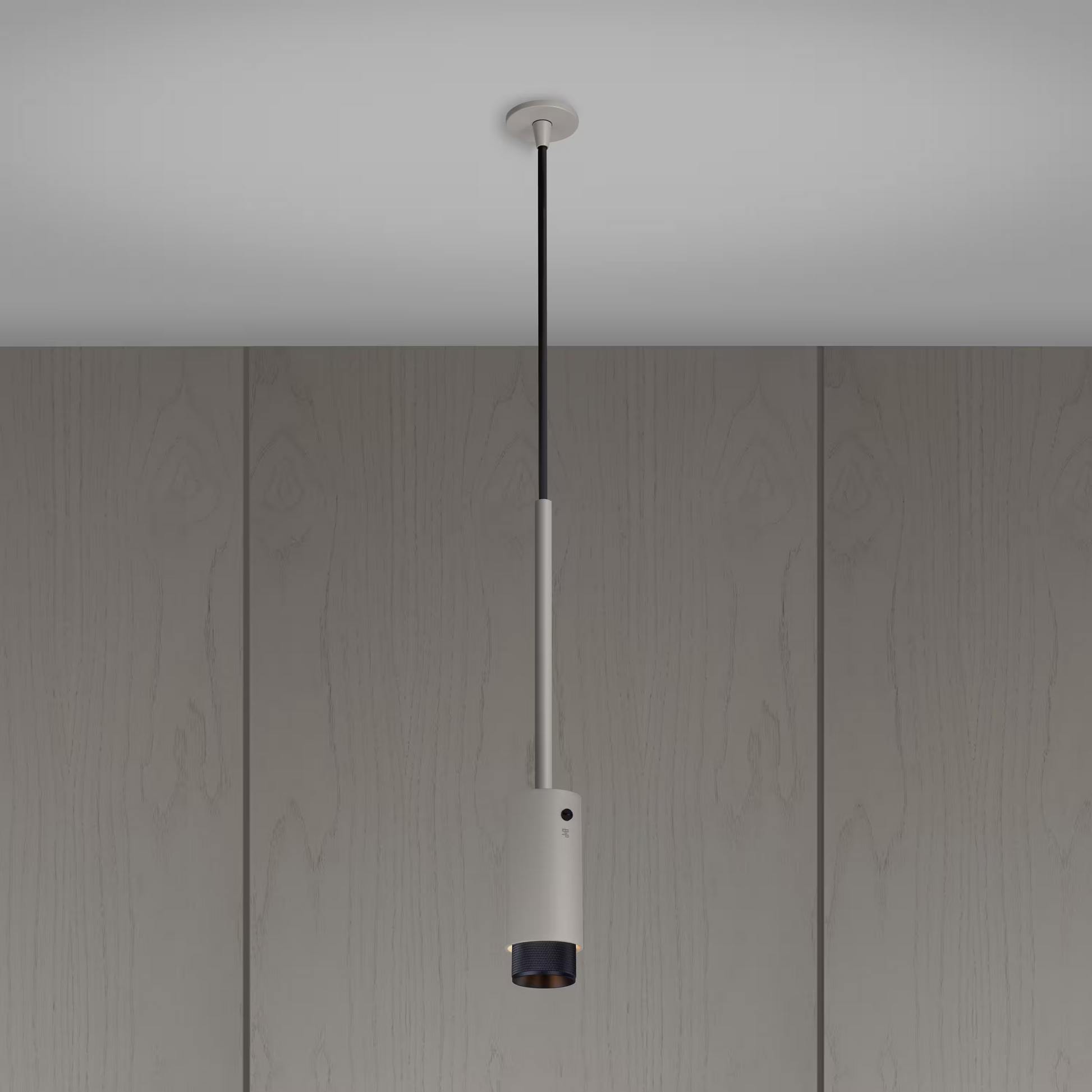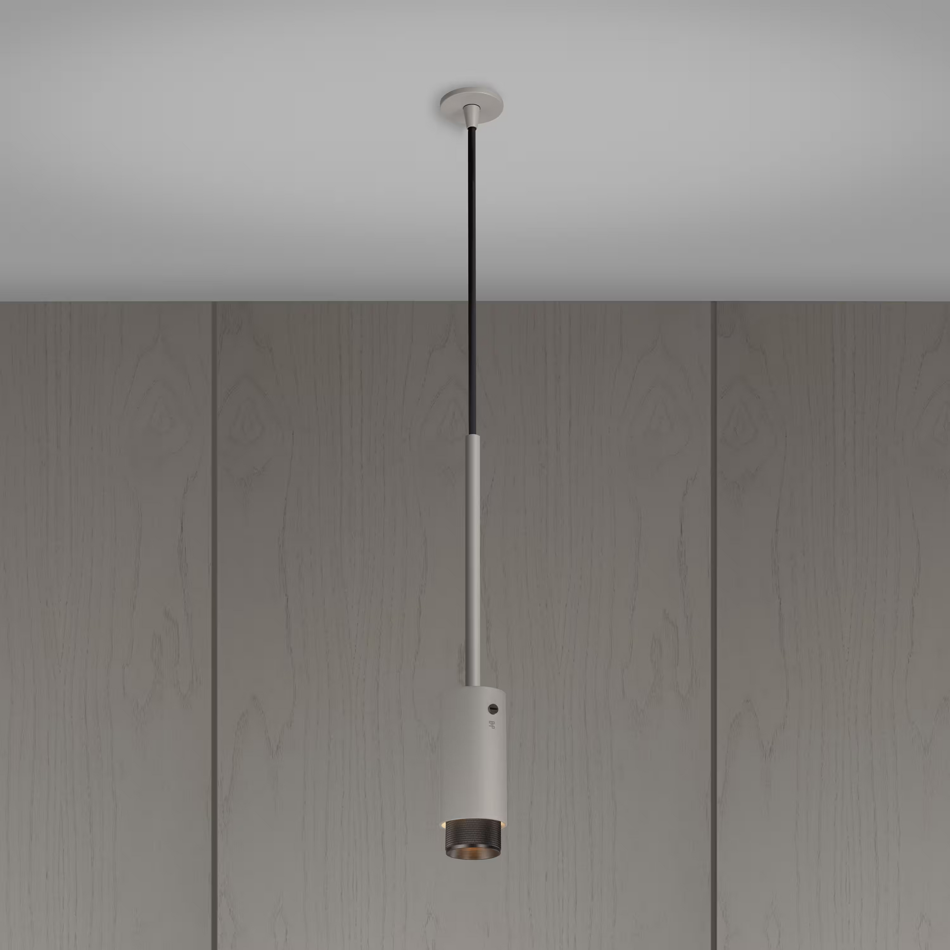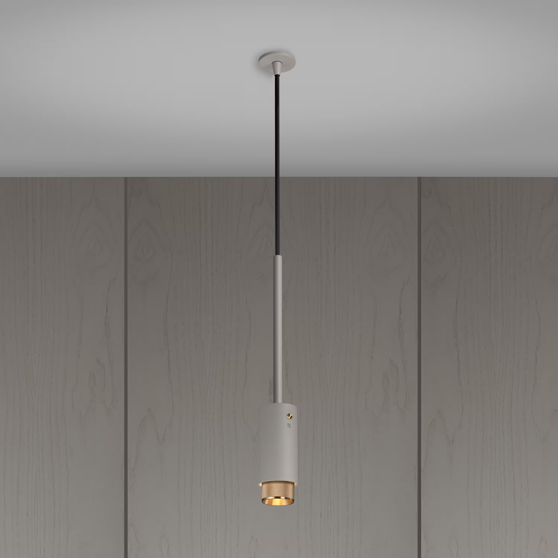 The pendant features our signature linear-knurl baffle and machined torx screws, both made from solid brass. The baffle captures light and creates a delicate metallic glow, whilst a honeycomb filter emits a precise, non-glare, directional spotlight.