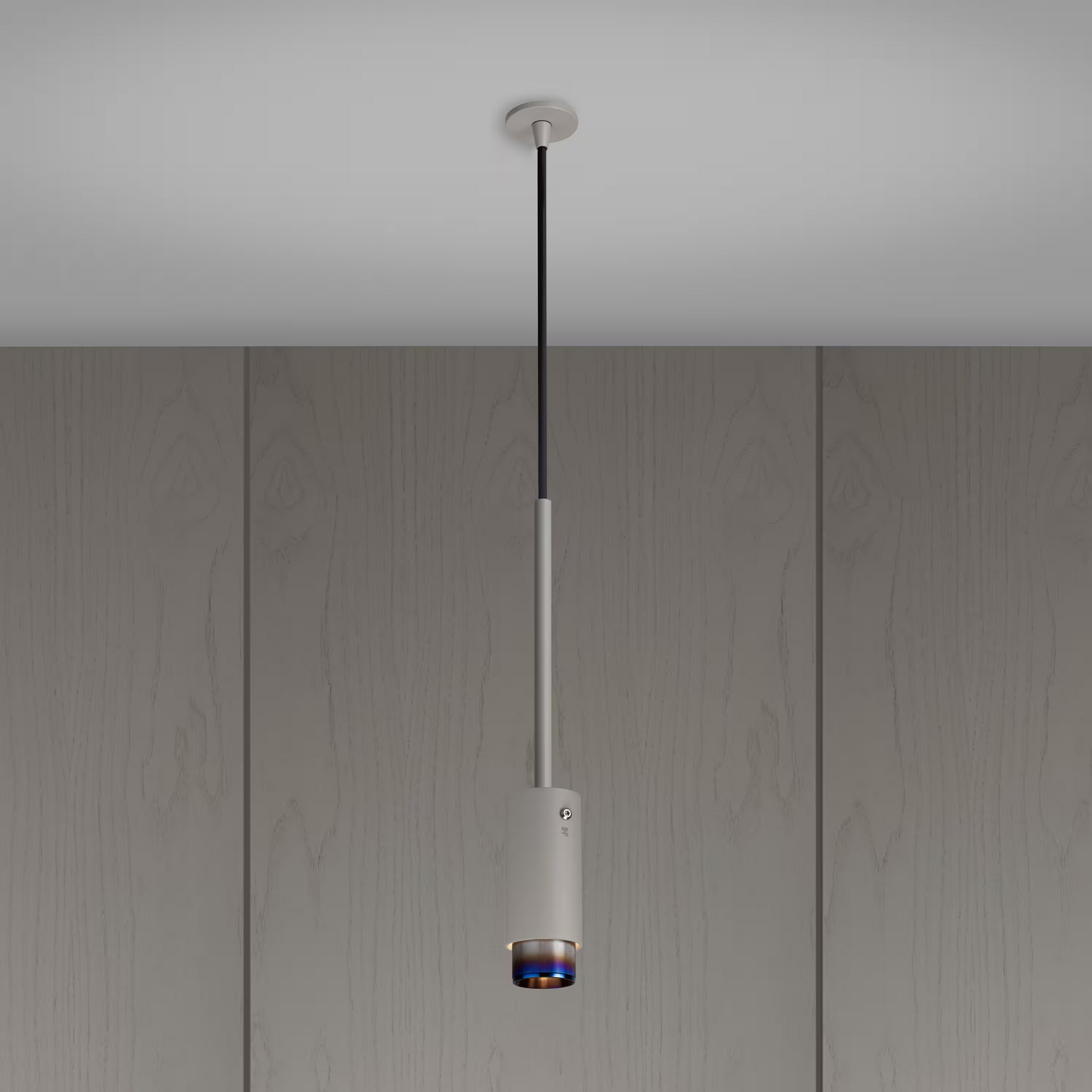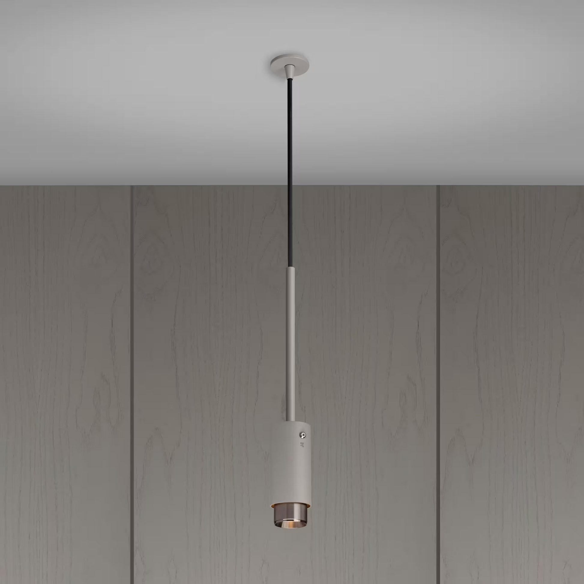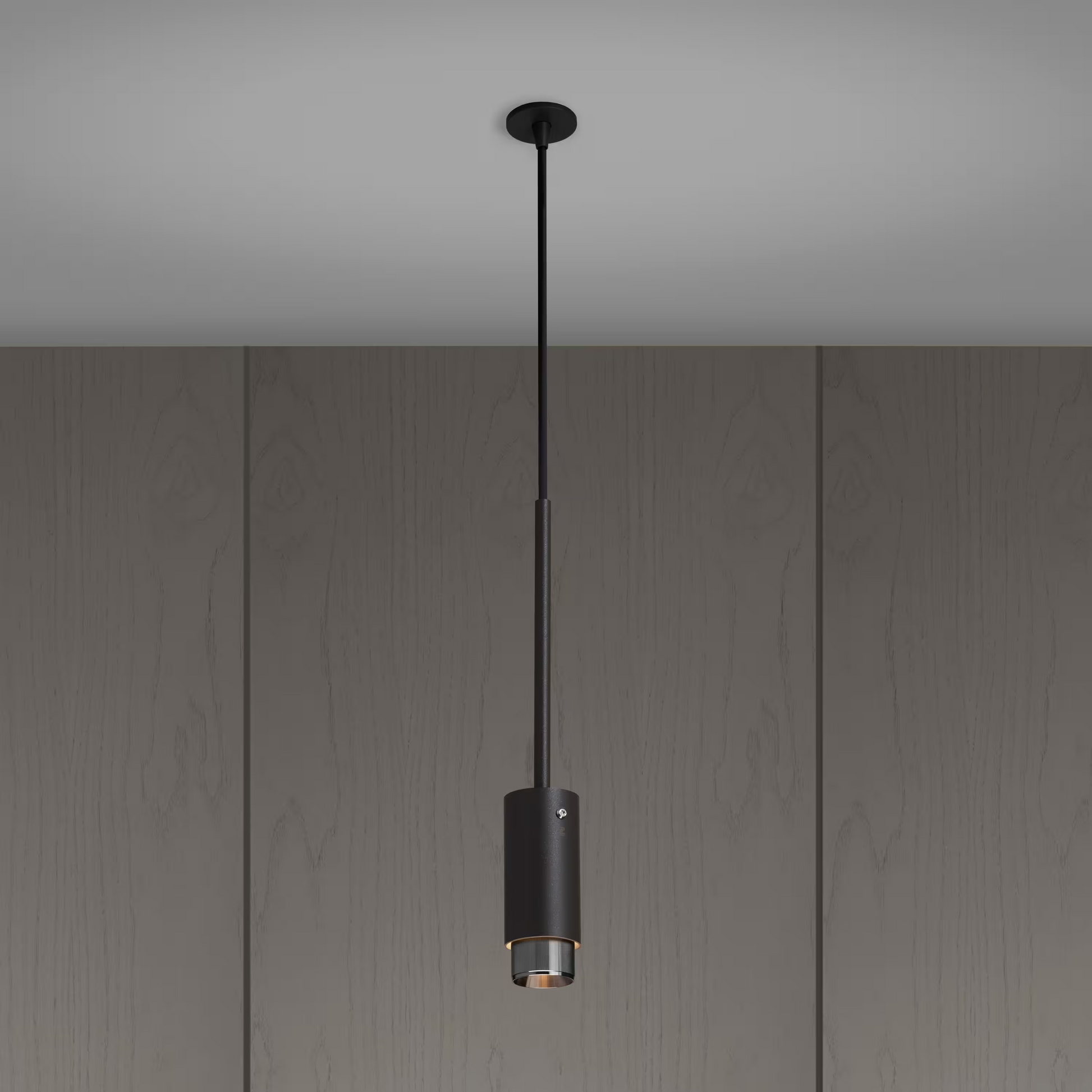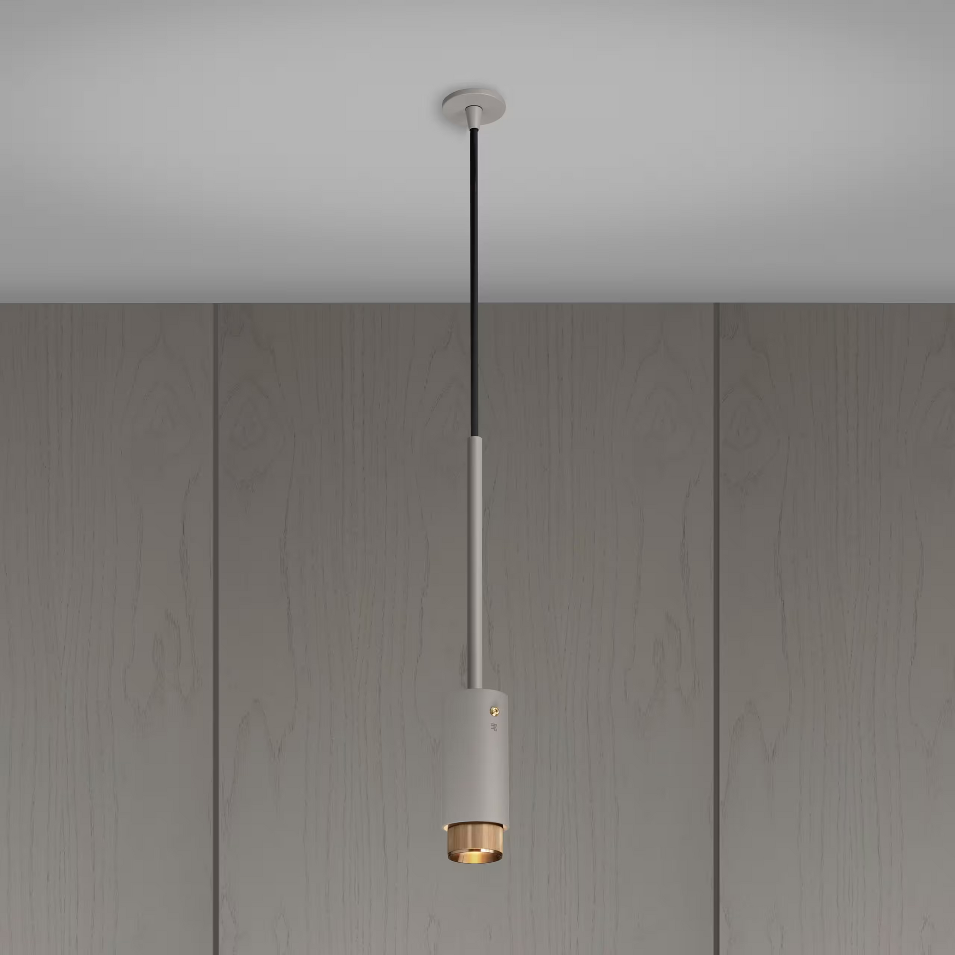 The pendant features our signature linear-knurl baffle and machined torx screws, both made from solid brass. The baffle captures light and creates a delicate metallic glow, whilst a honeycomb filter emits a precise, non-glare, directional spotlight.