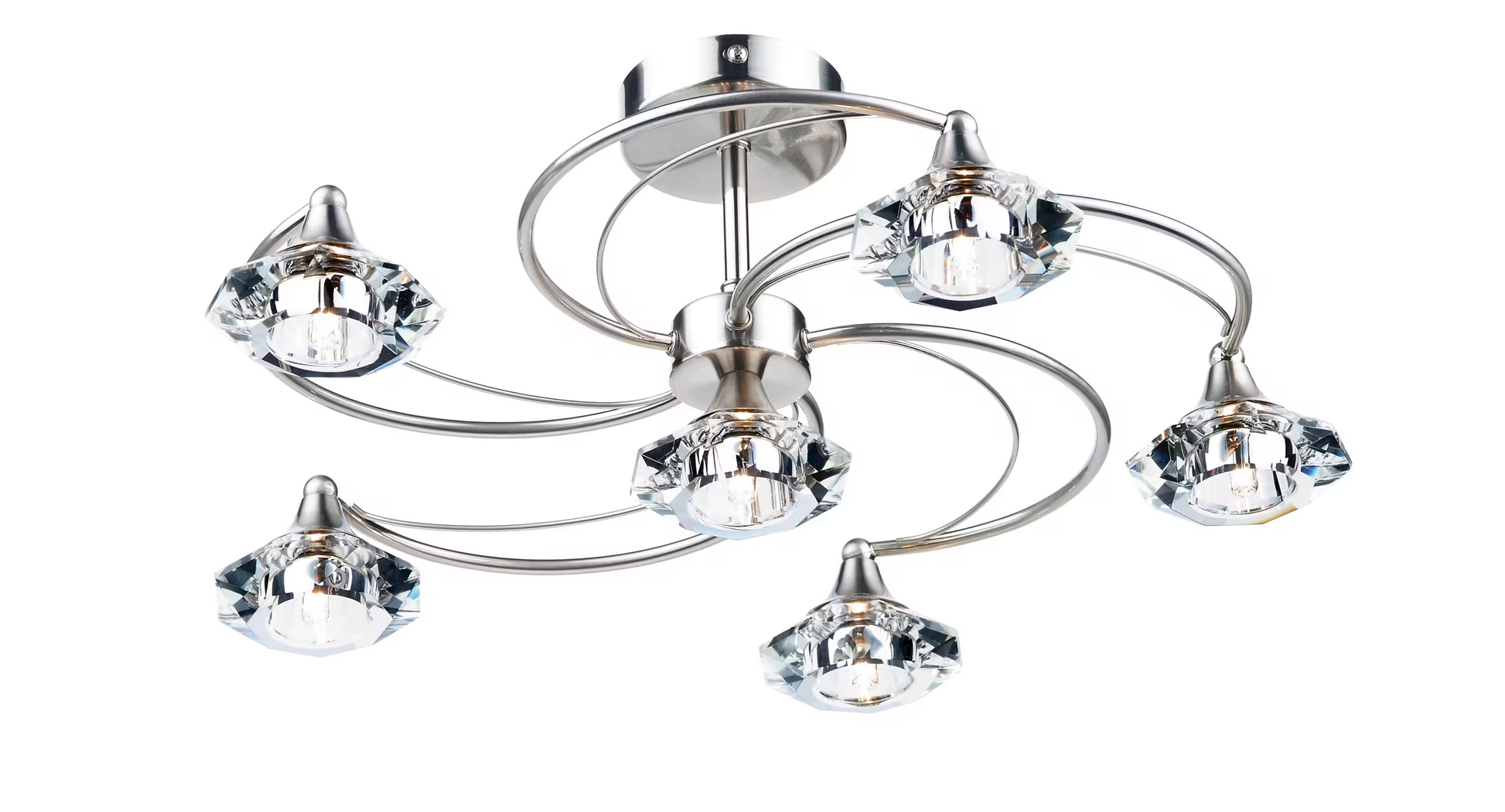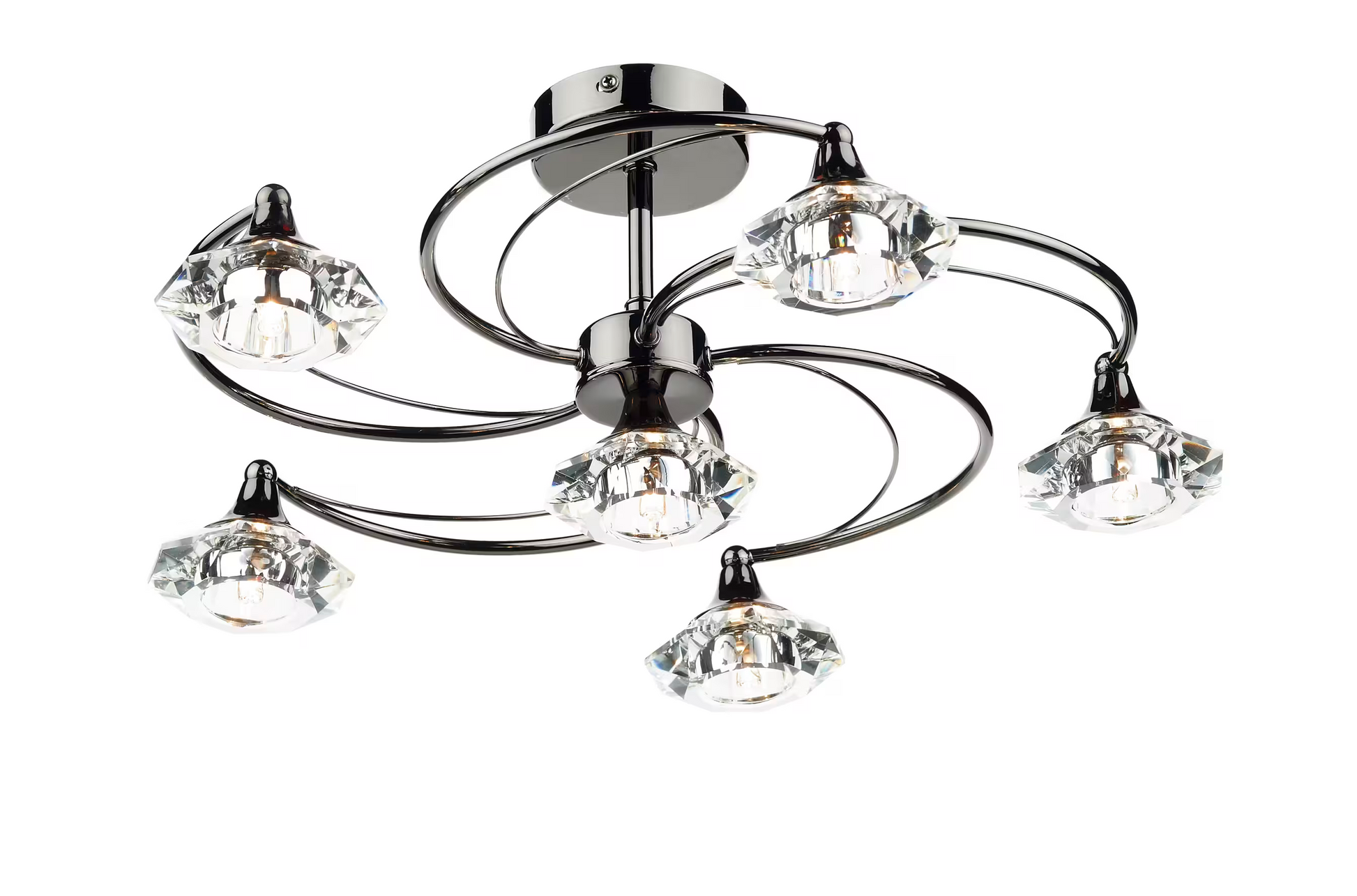 LUTHER 6lt Semi Flush fitting in various finishes with faceted crystal glass shades.