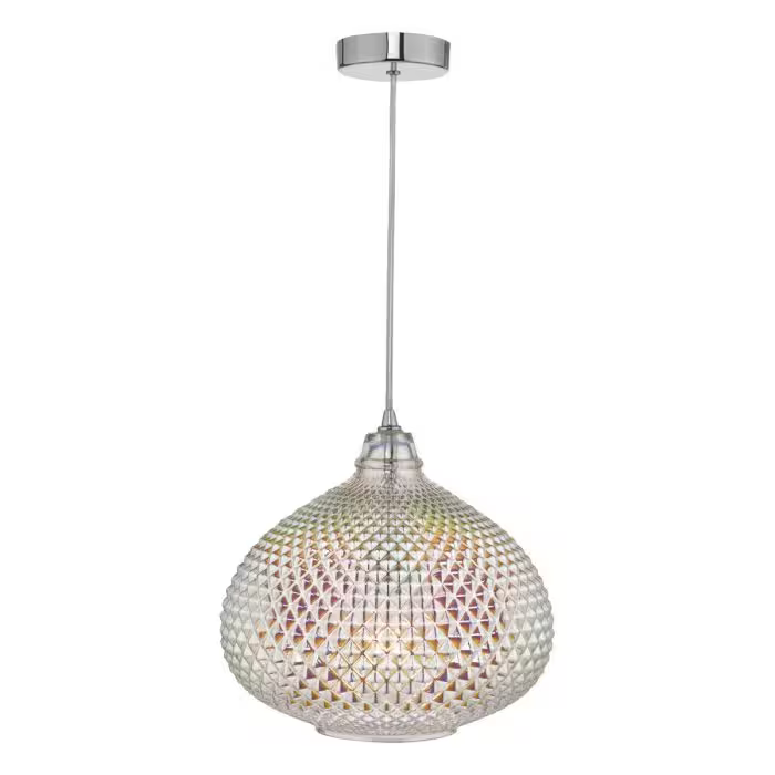 The Roisin Pendant is a sophisticated and versatile lighting fixture that brings a touch of classic charm to any room. It seamlessly blends a beautifully textured fluted glass shade with sleek, modern polished chrome accents. This pendant's simple yet refined silhouette makes it a perfect choice for adding a layer of elegance to your kitchen, dining area, or entryway.