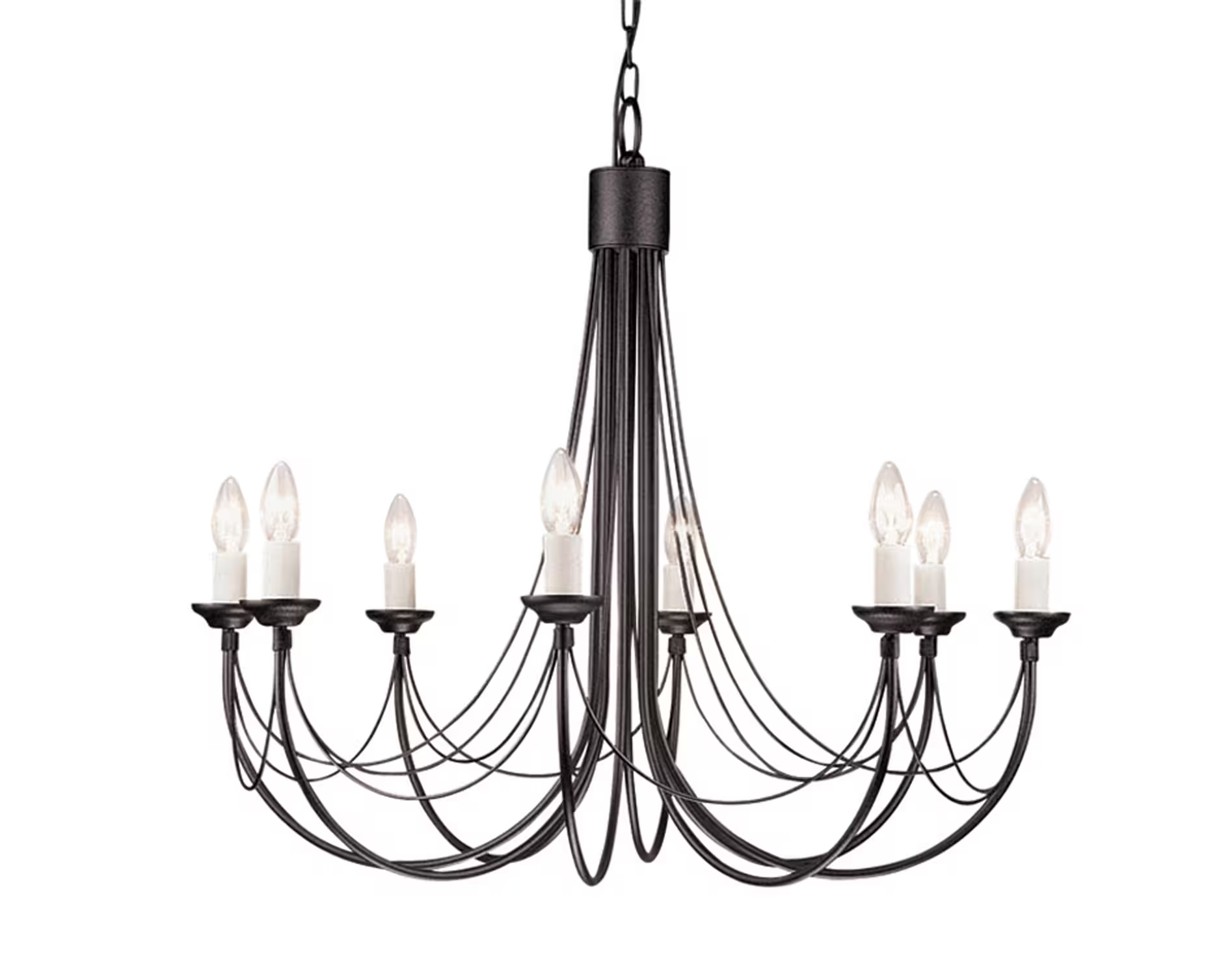 A range of candelabra style Gothic fittings with distinctive hand-bound wire drapes and ivory coloured candle tubes.