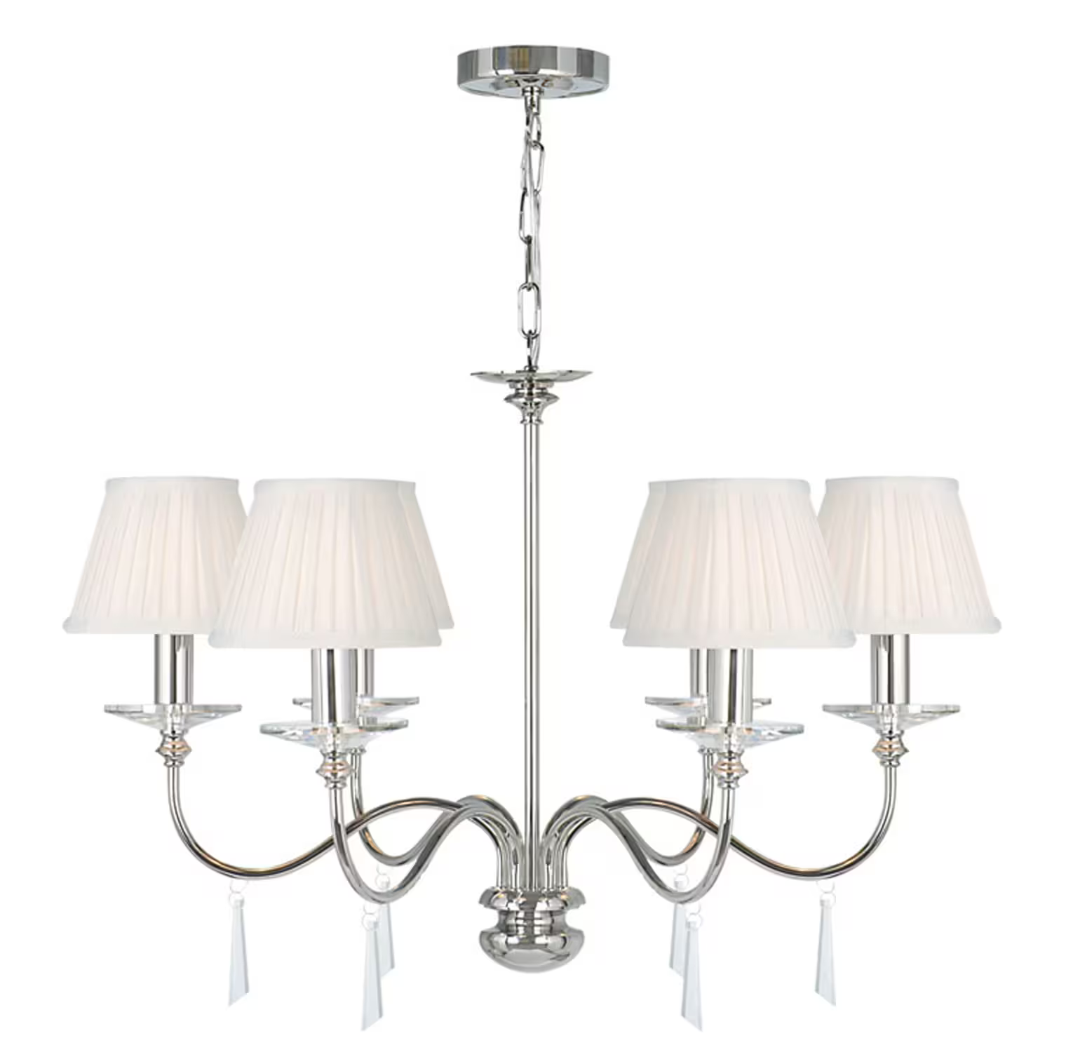 The classic Finsbury Park family is a traditionally handmade series featuring hand cut glass droplets with cut glass sconces. Using many components in cast brass, this solid range of fittings comes with a Polished Nickel finish. Some fittings are shown with optional LS162 hand made shades, and the ceiling lights are convertible to semi-flush. The lanterns are also available in Old Bronze and have telescopic rods to allow height adjustment for lower ceilings.