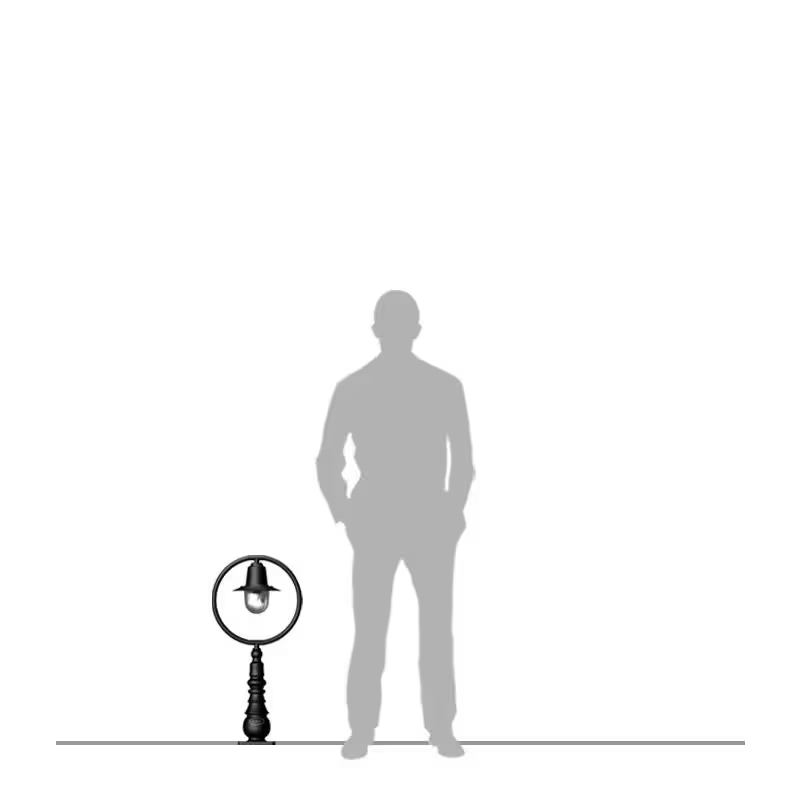 Classic railway style pedestal light in cast iron and steel 0.75m in height. Inspired by the classical and functional features originating from the Georgian era, the cylindrical design from testation Master range allows for maximum lighting spread through the polycarbonate glazing while the ornate capping encloses the light source, reduces light pollution and reflects the light spread downwards.