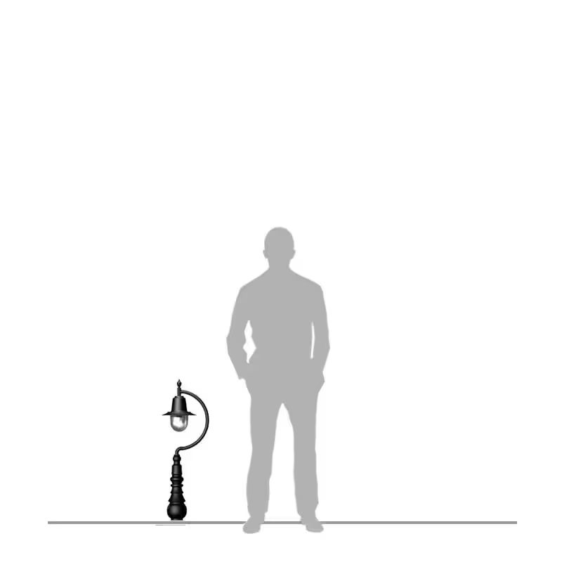 Vintage tear drop pedestal light in cast iron and steel 0.82m in height The Goose Neck range as the name suggests is based on the organic curve from the old farmyard Goose neck. The vintage design of the range is really flexible to a wide range of customer needs from placing along winding driveways to highlighting a corner of the garden. This Goose Neck range is also available with hand spun copper heads too.