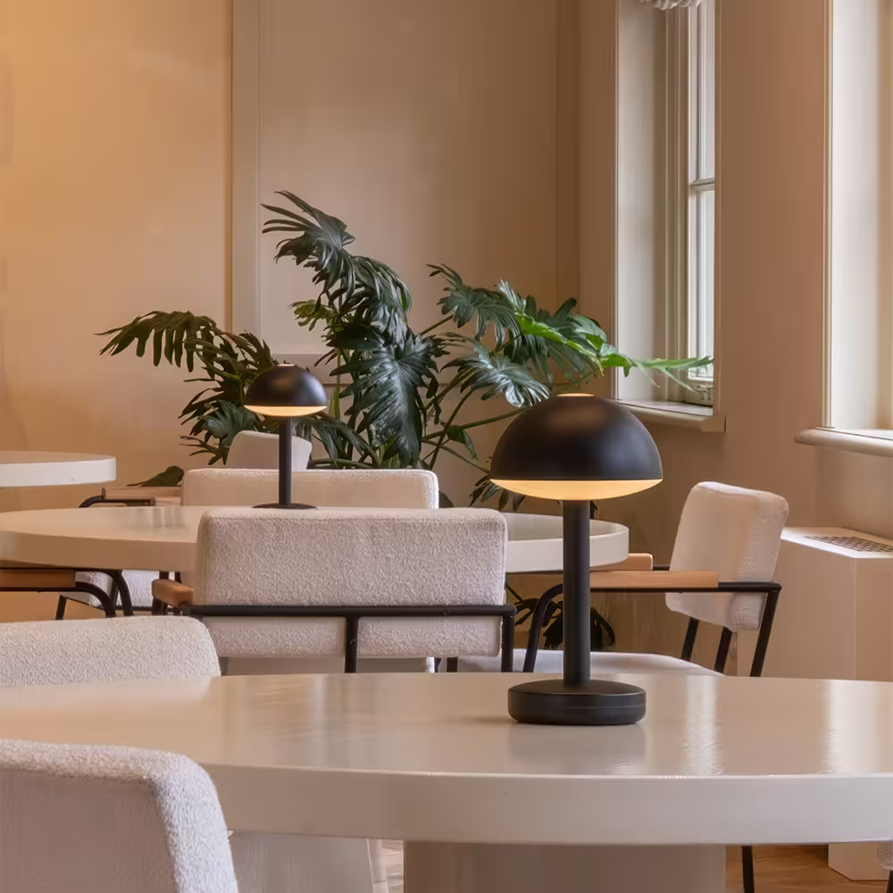 Bug is a wireless table lamp that quietly captivates attention. It's a statement piece versatile for both indoor and outdoor settings. Place it on a sideboard, in your study nook, or amidst an outdoor dinner—it adapts like a chameleon to your vibe, whether it's cozy, romantic, or purely practical. Moreover, Bug seamlessly pairs with your smart lighting system, granting control through your phone, voice commands, switches, or motion sensors. Note: A bridge is required for this feature. Bug operates on Zigbee 3.0.