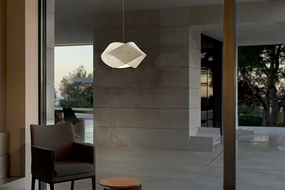 Reminiscent of a granny knot, the Nut lamp’s fetching form is made by tying a knot (in a manner of speaking): it is the result of twisting and looping a piece of wood veneer. Two designs for the Nut pendant are practicable and are determined by the direction of torsion—that is how the wood veneer is twisted.