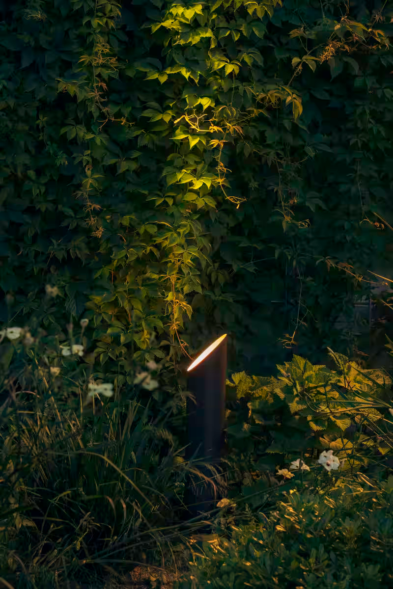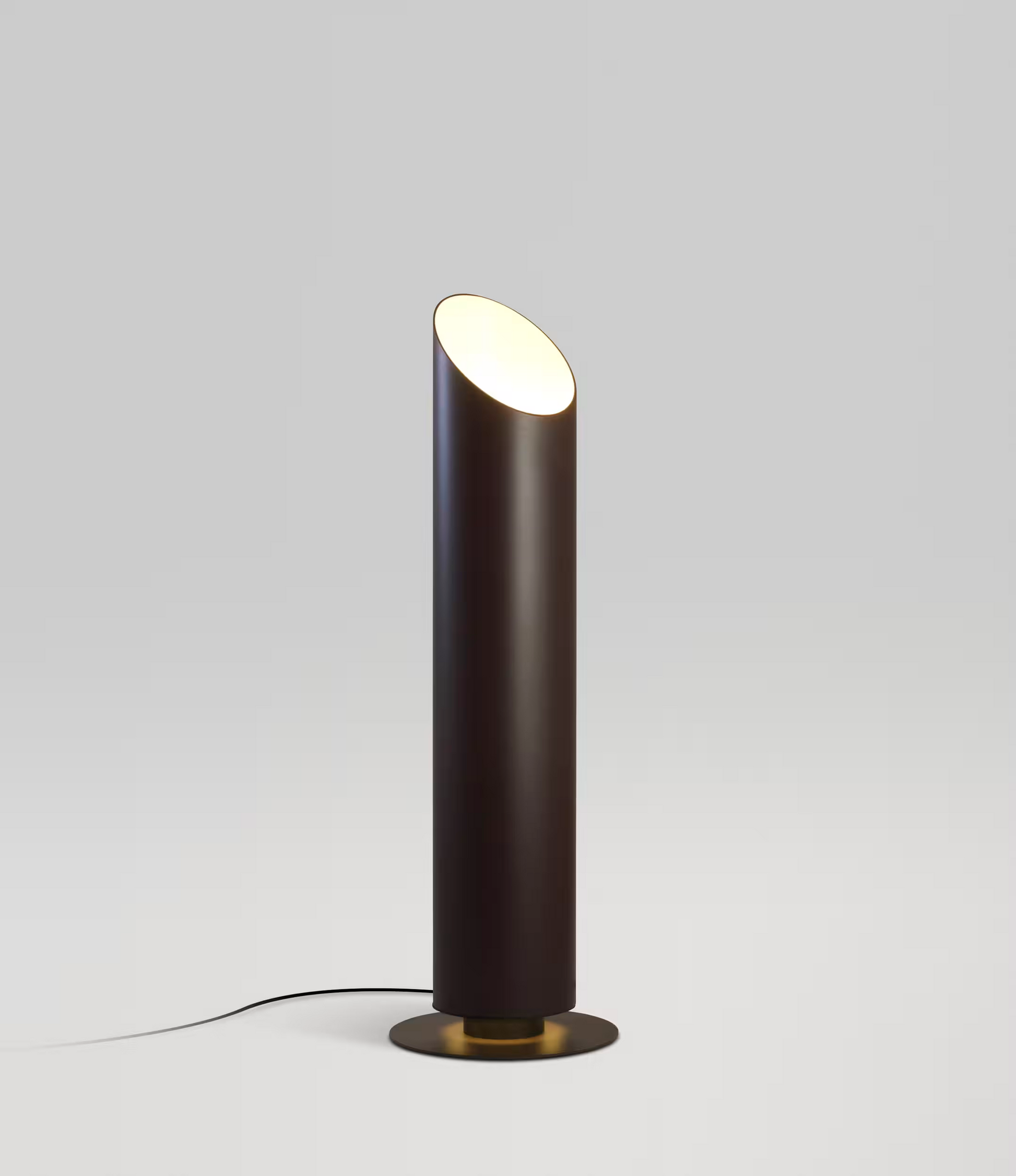 Embracing simplicity, its design consists of an aluminium tube with two openings that allow the light to be projected from the top and to escape from the bottom. The opening at the top features an irregular shape, an aesthetic detail visible when the lamp is off and greatly enhanced when it is on, as a perfect ellipse is traced on the lamp itself, standing out in the darkness.