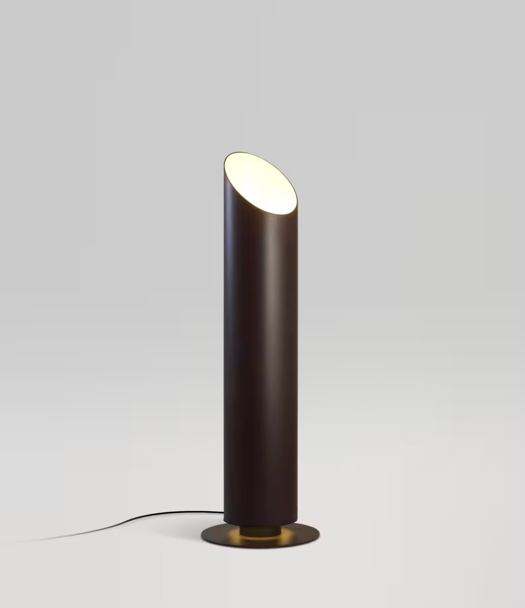 Embracing simplicity, its design consists of an aluminium tube with two openings that allow the light to be projected from the top and to escape from the bottom. The opening at the top features an irregular shape, an aesthetic detail visible when the lamp is off and greatly enhanced when it is on, as a perfect ellipse is traced on the lamp itself, standing out in the darkness.