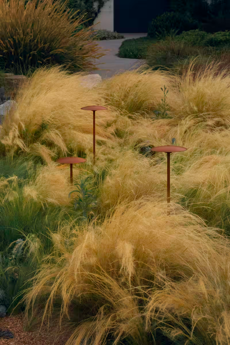 This year, the collection features new bollard lamps, raised by means of a post that can be buried in dirt or gravel, perfect for illuminating pathways, gardens, terraces, andwalls, and blending nicely with vegetation.