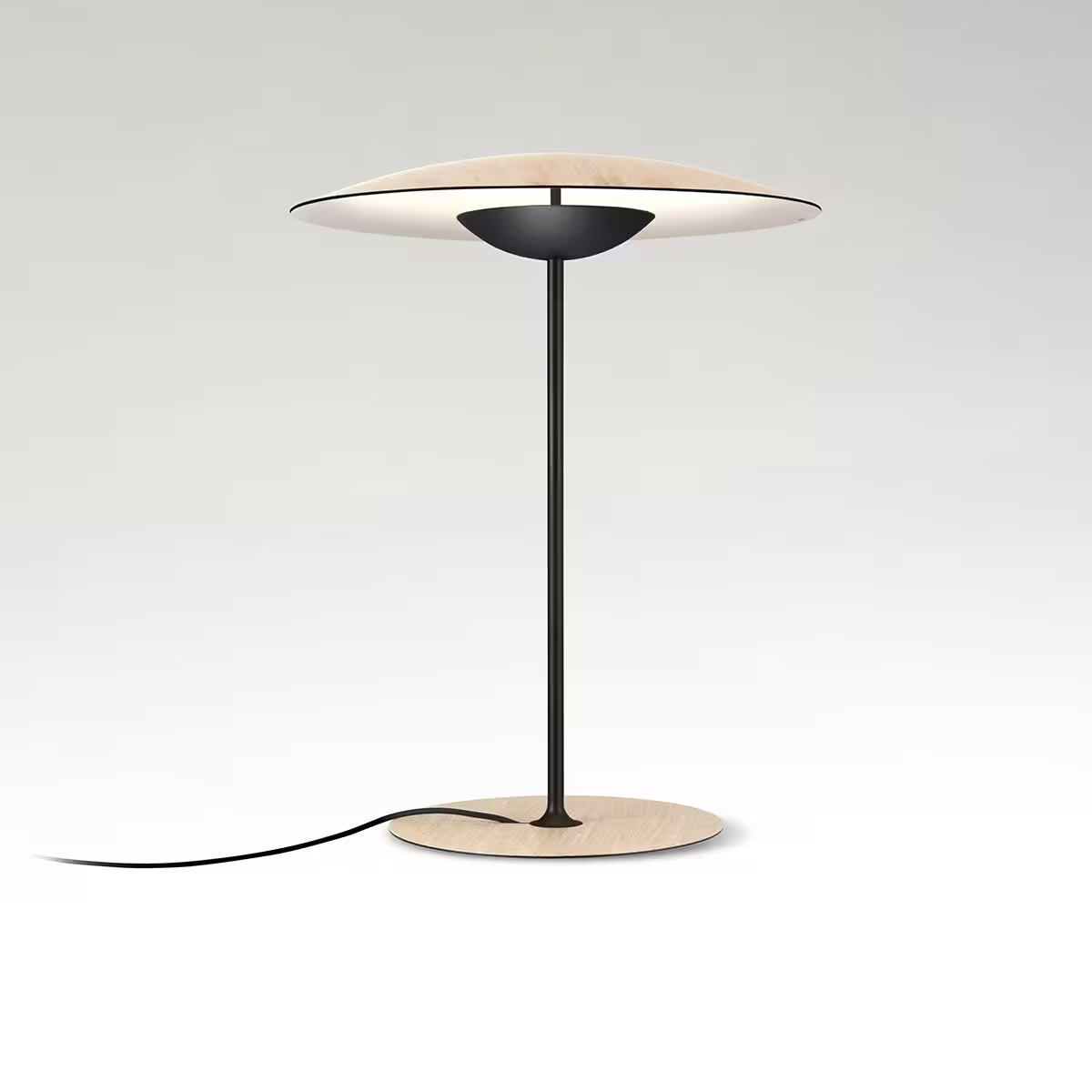 Diffuser and pressed wood base of 4 mm in natural oak or wenge. Injected aluminium dissipater and lacquered black matte metal stem.