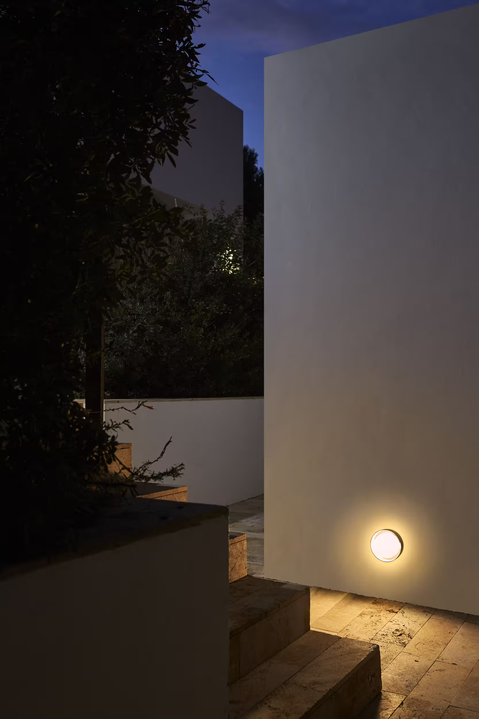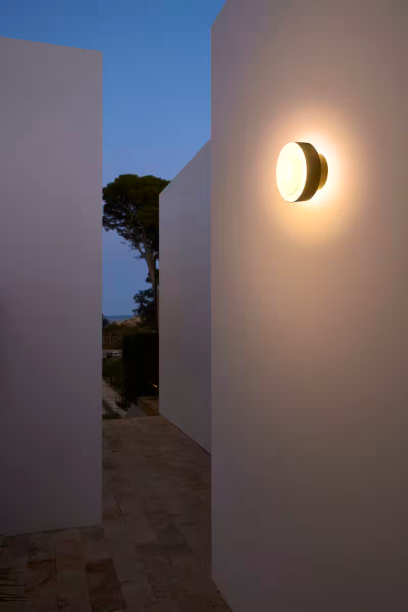 The Plaff-On! Outdoor Wall Light is a testament to the idea that outdoor lighting can be both highly functional and beautifully integrated into your home's architecture. This minimalist fixture features a low-profile, circular design with a stylish dark metallic finish and a domed, white glass diffuser. It provides a sophisticated and practical lighting solution, enhancing the beauty and safety of your outdoor areas.