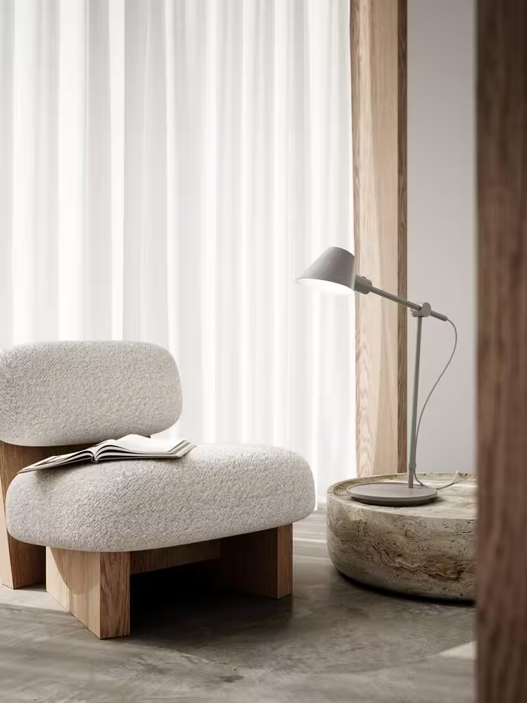 Stay table lamp is highly functional, as the arm and head of the lamp can be adjusted according to wishes and needs, which make it ideal as task lighting in the office. Furthermore, the silky matte grey metal support the modern and minimalistic expression.