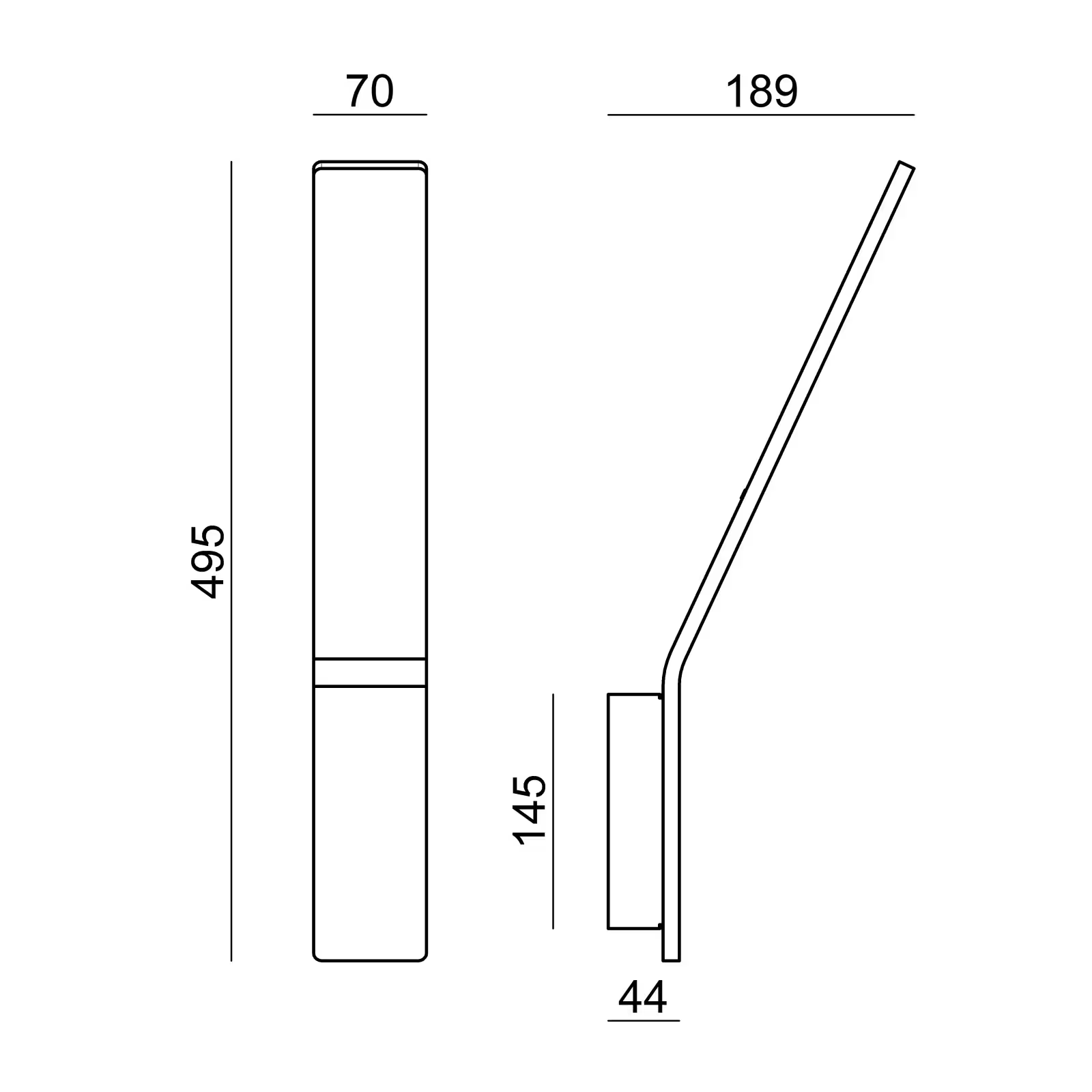 The design emphasises a seamless transition between the compact rectangular wall base and a long, flat-profile arm set at a fixed obtuse angle. Available in Black and White, the Lama adapts easily to bedroom, corridor or living-room schemes.
